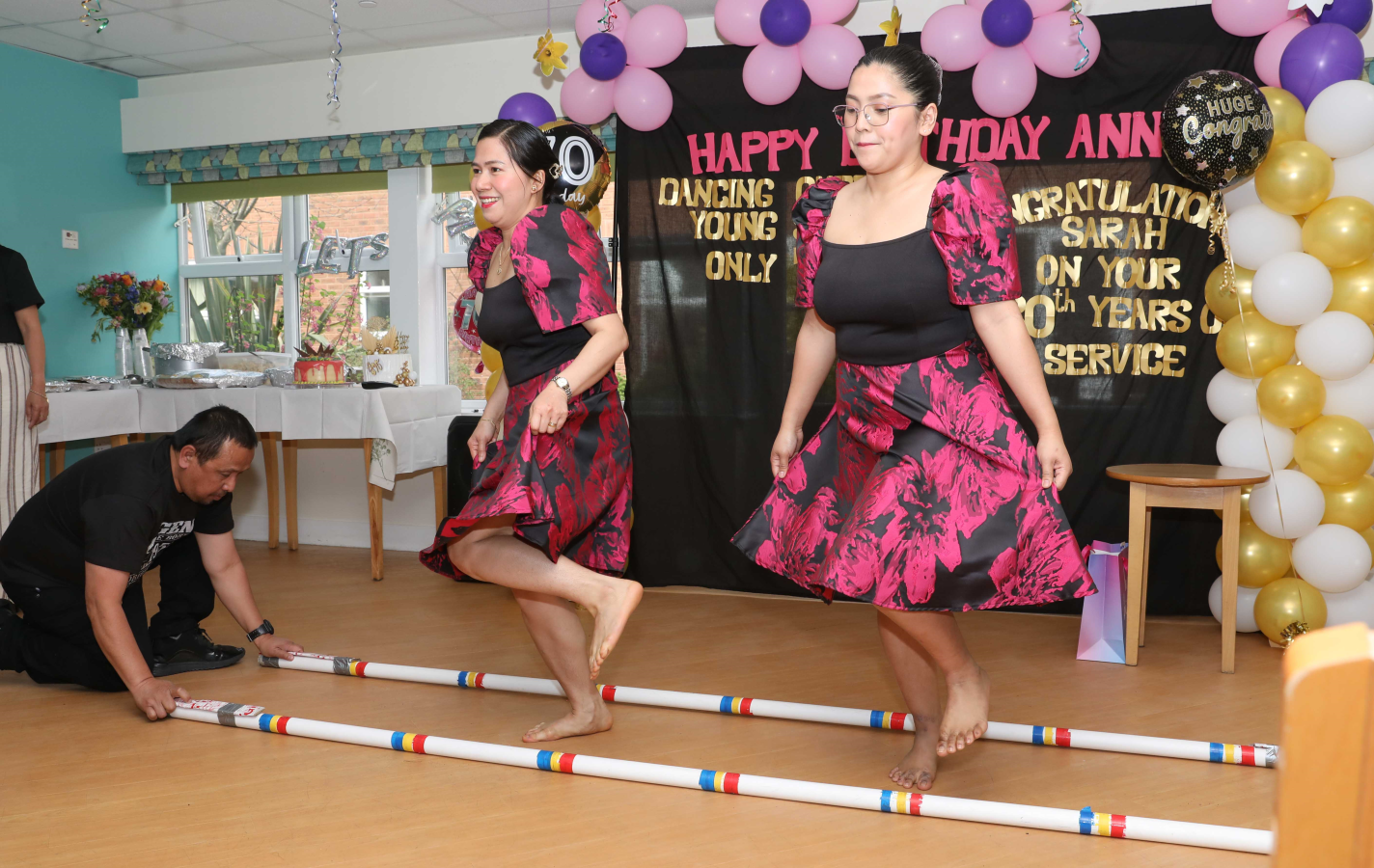 Among the surprise celebratory activities were musical numbers by the Bodlondeb staff choir, which also included two singing residents Edwin Roberts and Jim Jarvis. Care practitioners Ma. Sheena and Udani Miranda performed a duet, and a number of carers also performed joyful dances, including a traditional Filipino national dance, and a fun routine to Abba's hit Dancing Queen.