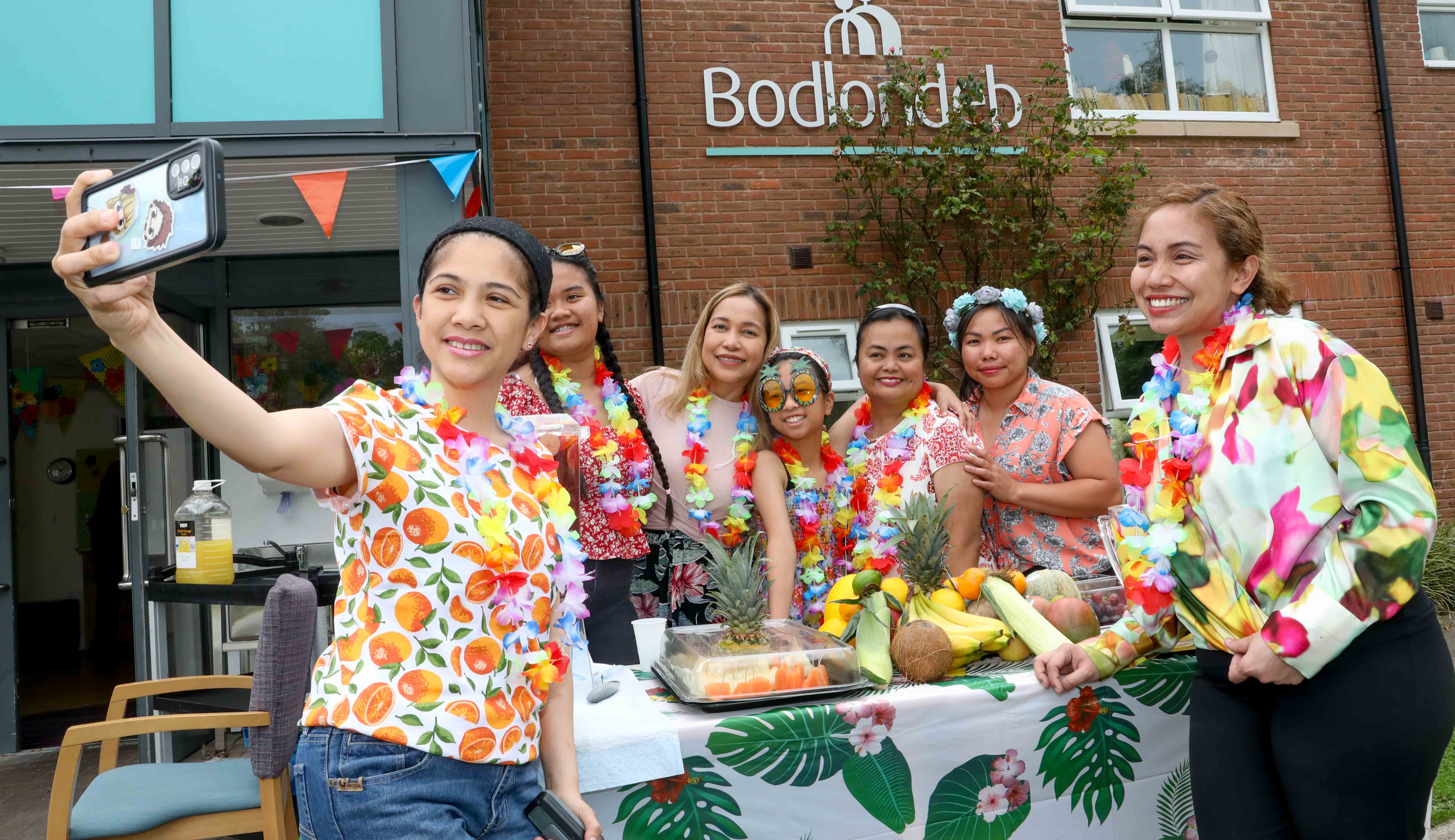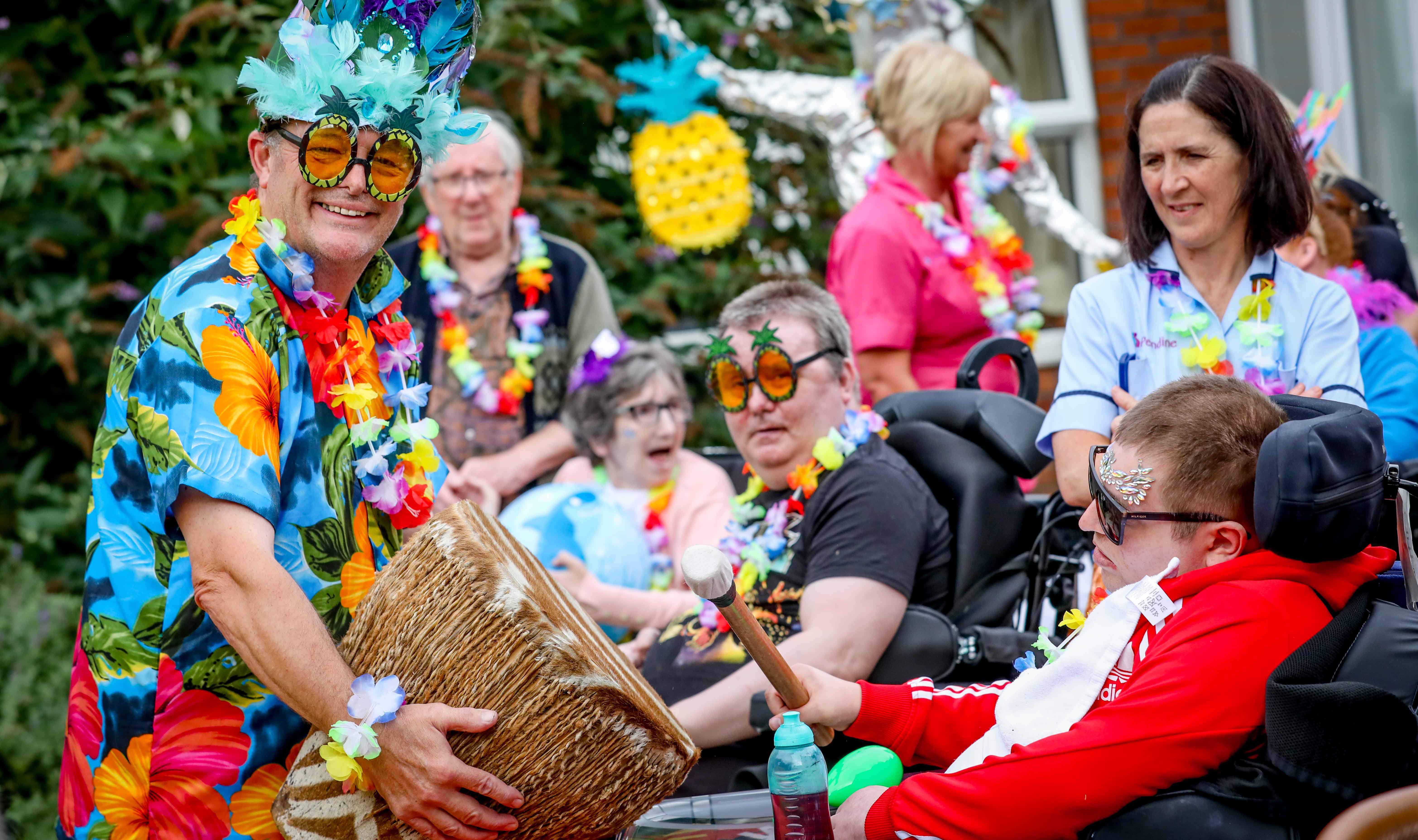 Residents and staff donned tropical shirts and flower garlands for the annual event at the Pendine Park care organisation.