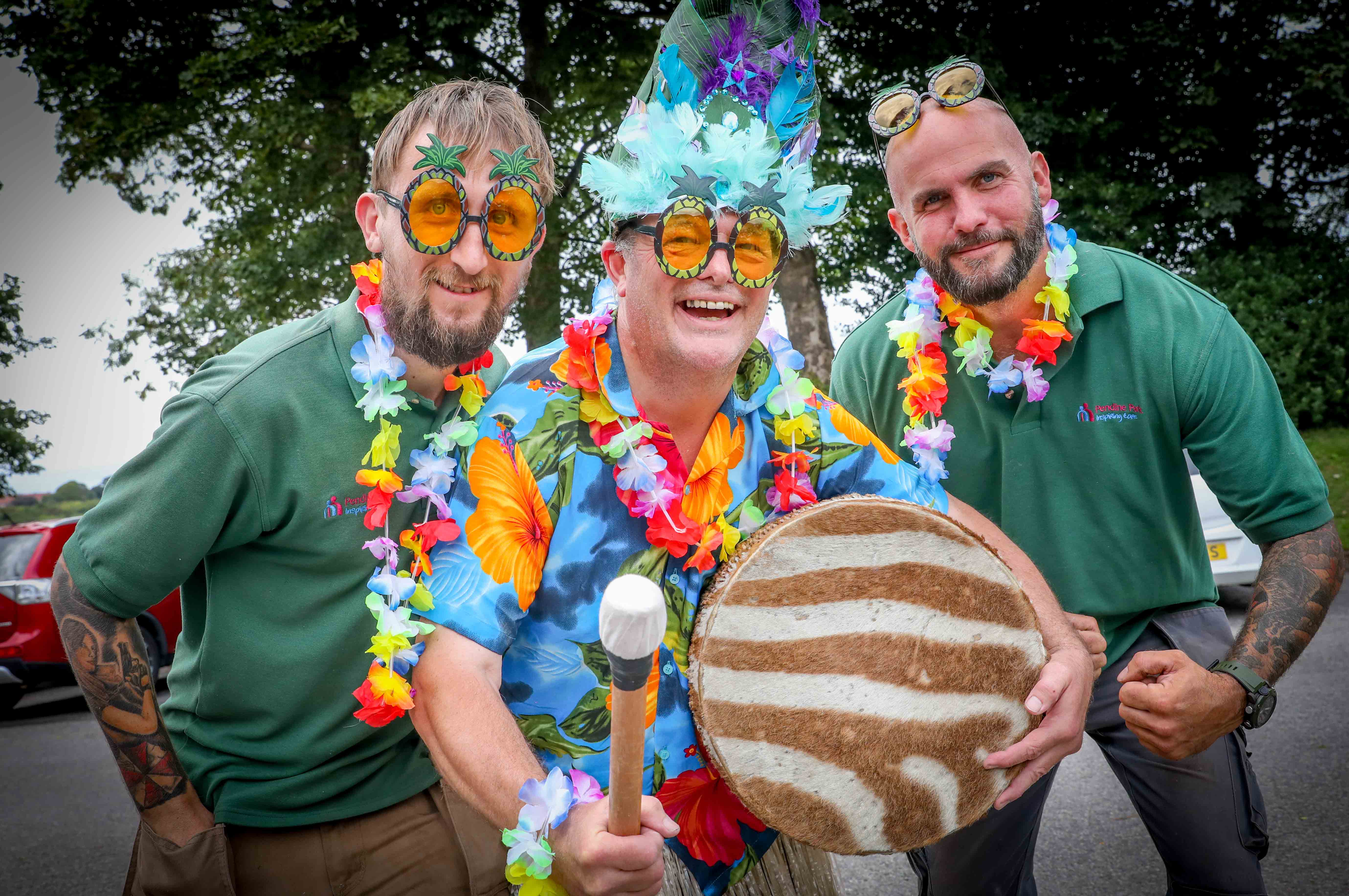 They were all dressed in Hawaiian shirts, grass skirts and pineapple shaped sunglasses, topping their outfits off with fancy feathers hats.