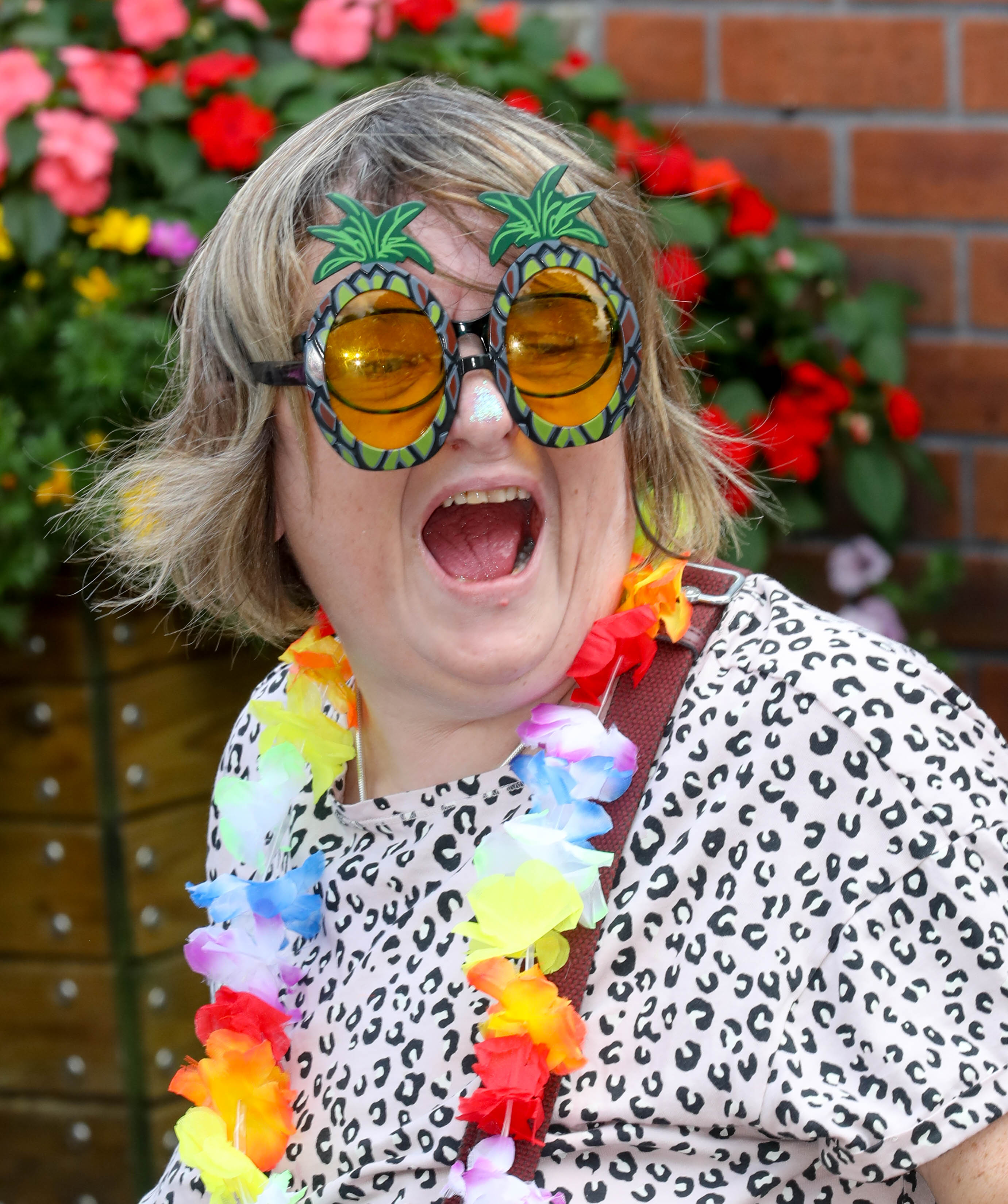Denise Roth, activities and enrichment co-ordinator at Cae Bryn care home, was unmissable as she sported a Jamaican style outfit, including long dreadlocks. She encouraged residents to singalong to Abba's hit song Dancing Queen and Candi Staton's Young Hearts Run Free, as the musical pineapple float arrived at the entrance way.
