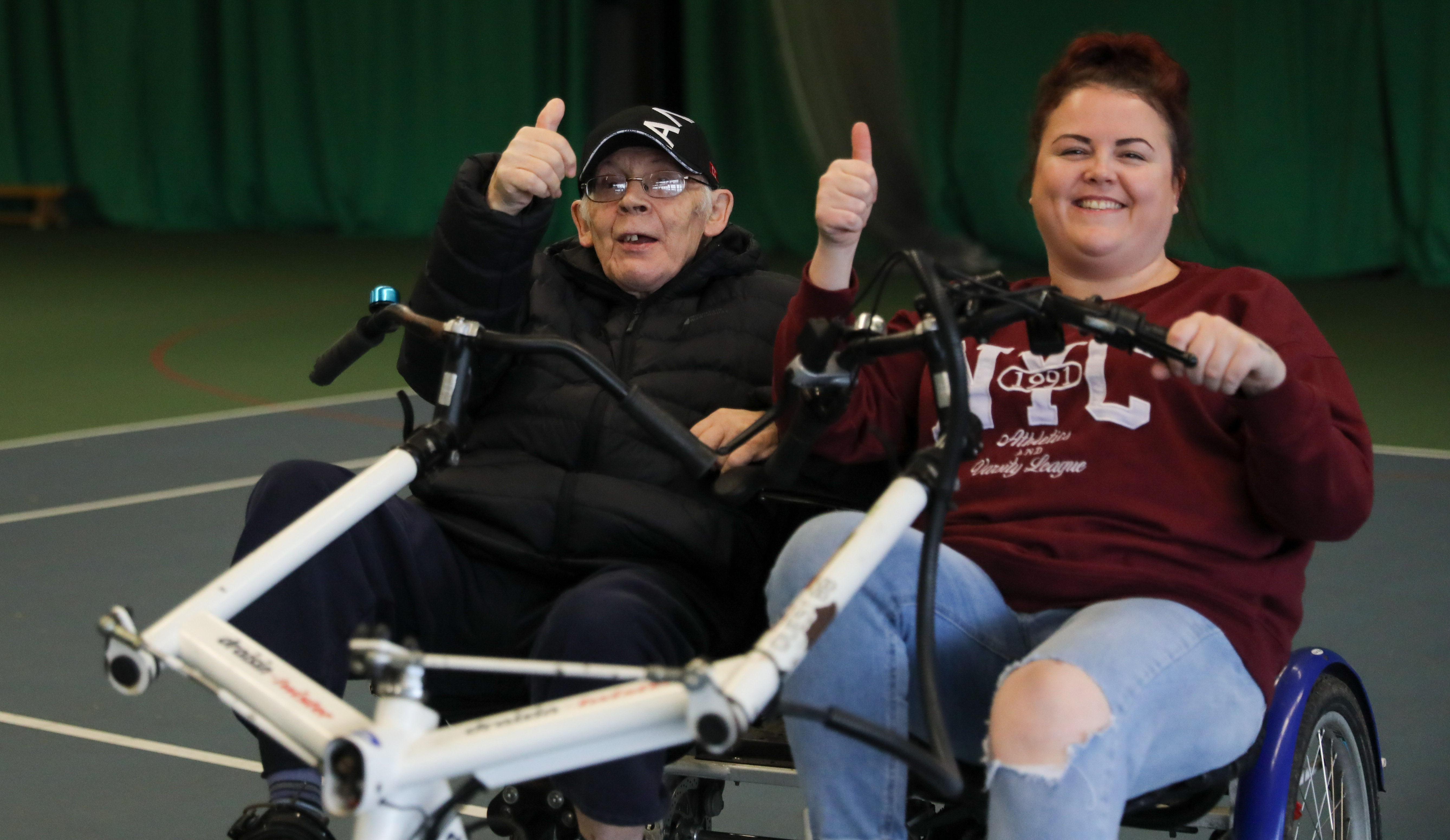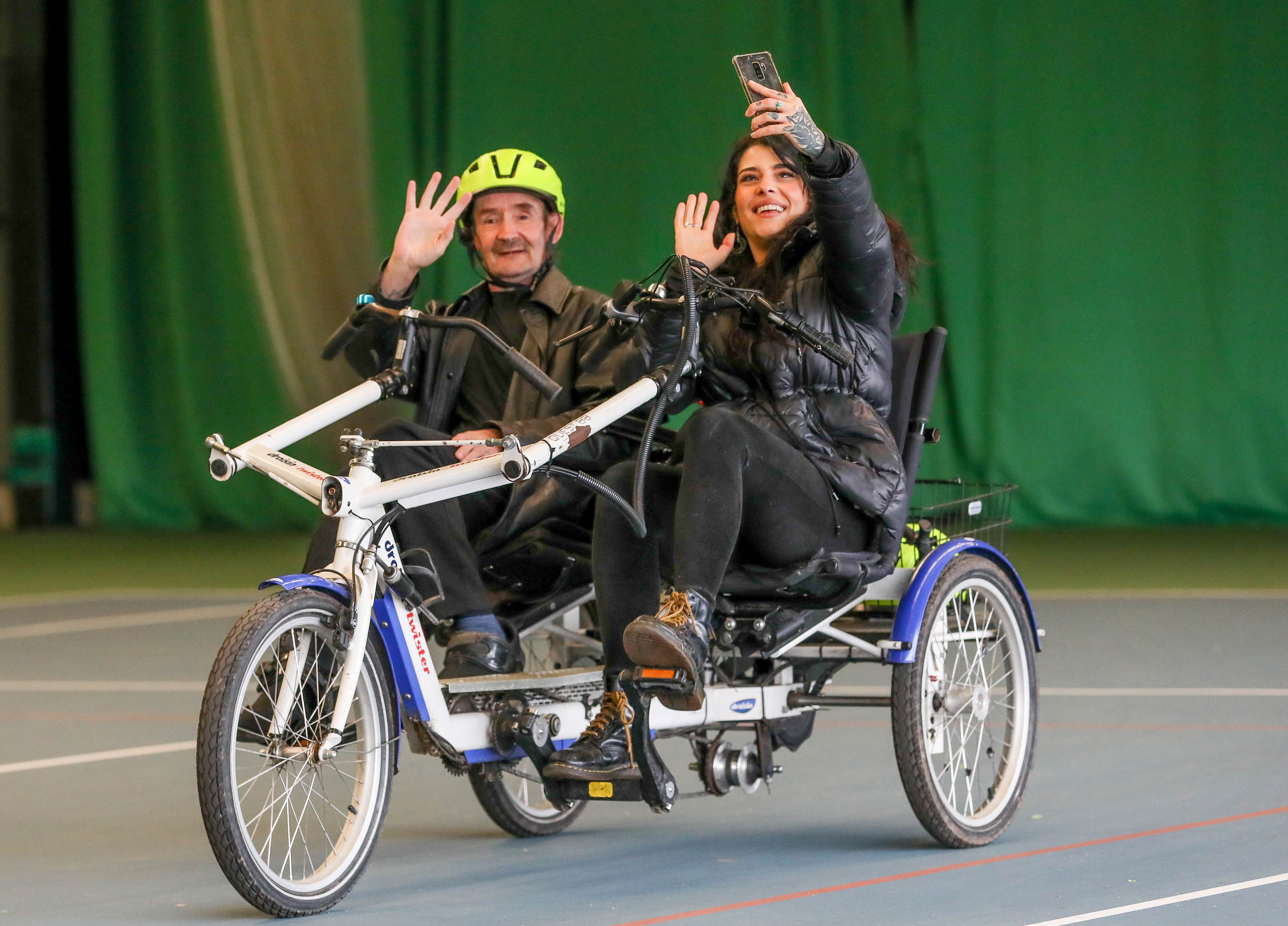 Caernarfon man Huw Williams, who rode a tricycle with care practitioner Elliw Owen, enjoyed the hour-long session and said: "It was really hard work to keep pedalling. I was glad of Elliw's help. But I really enjoyed it and want to come again."
