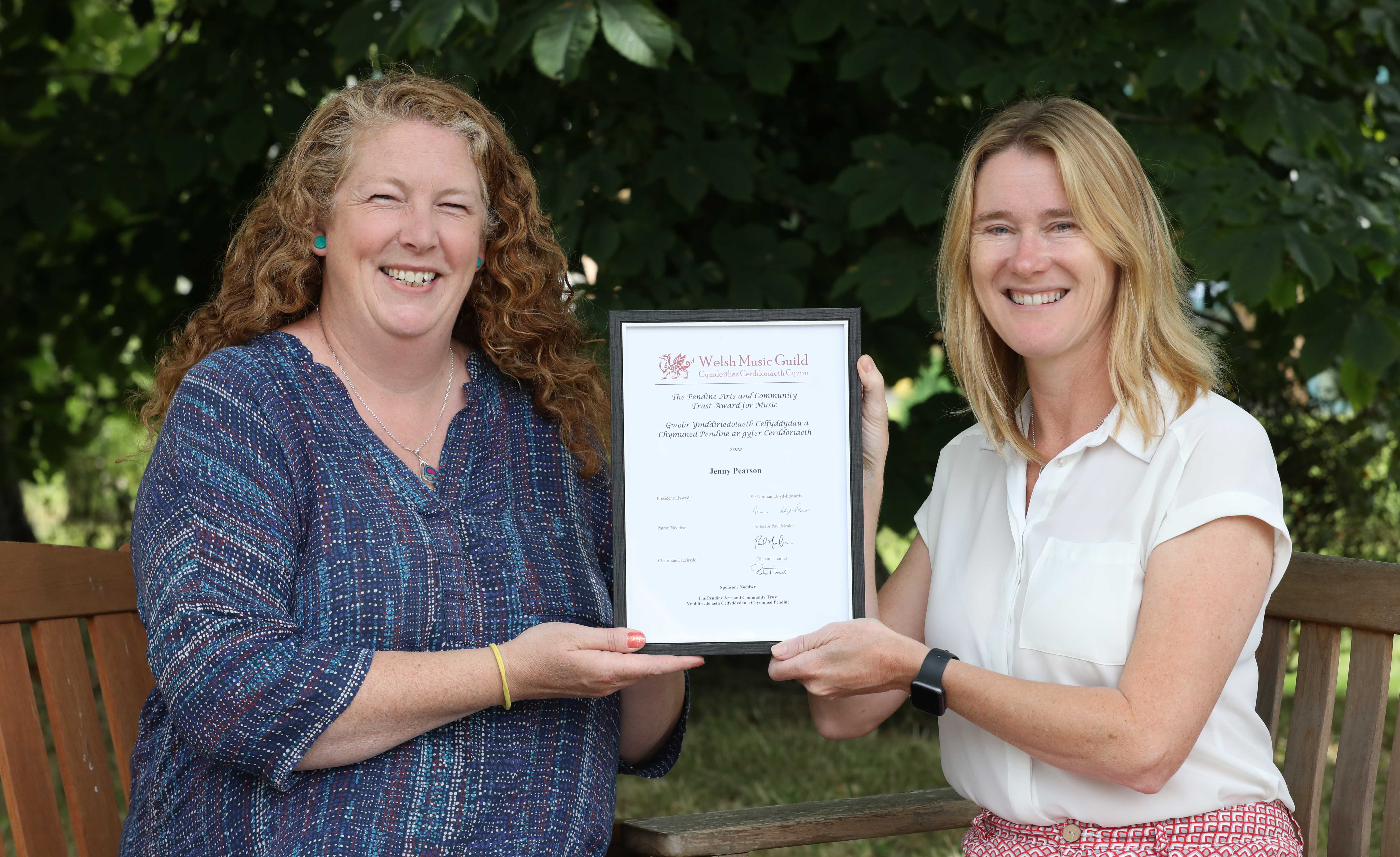 Jenny Pearson is the first ever recipient of the new Pendine Arts and Community Trust Award for Music announced at the prestigious 2022 annual Welsh Music Guild awards ceremony in Cardiff.