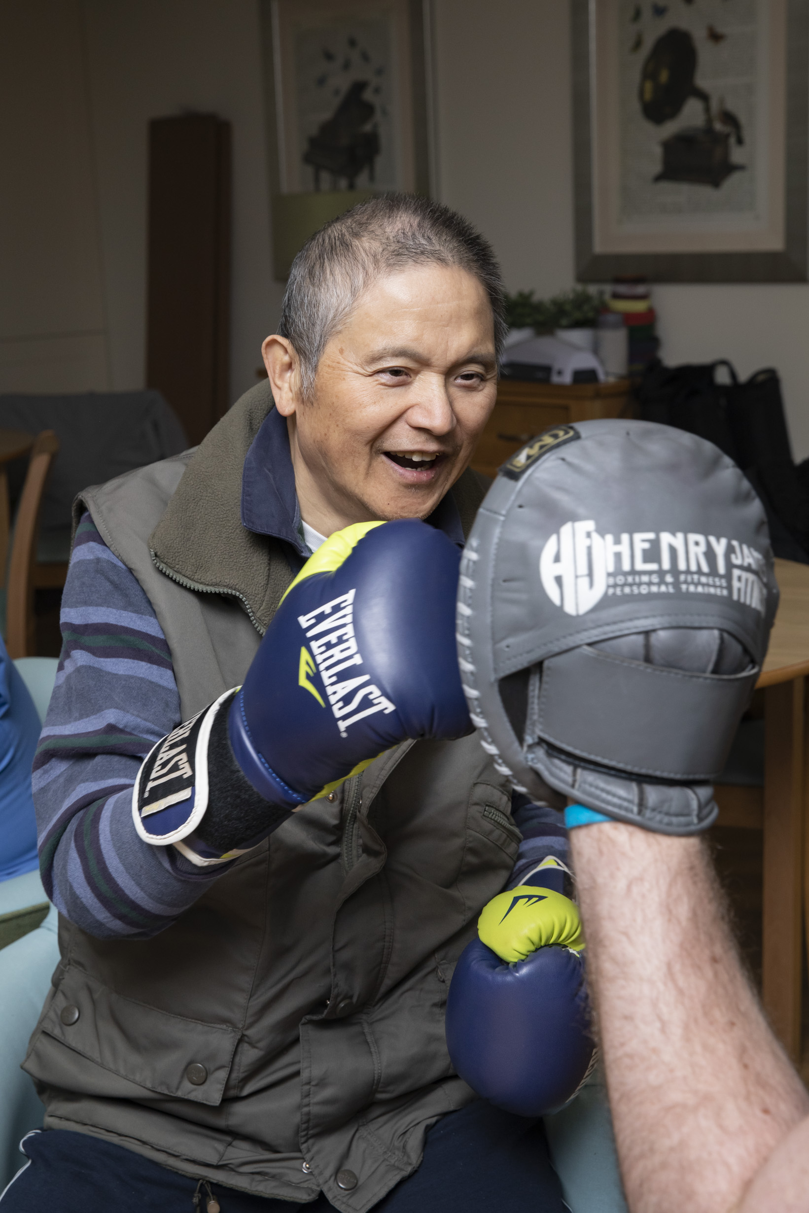 The special session of Boxing for Fitness was held at Pendine Park's Bryn Seiont Newydd home by former boxing champion Henry James Jones who has made three trips to Los Angeles to work at the famous Santa Monica Box N Burn gym.