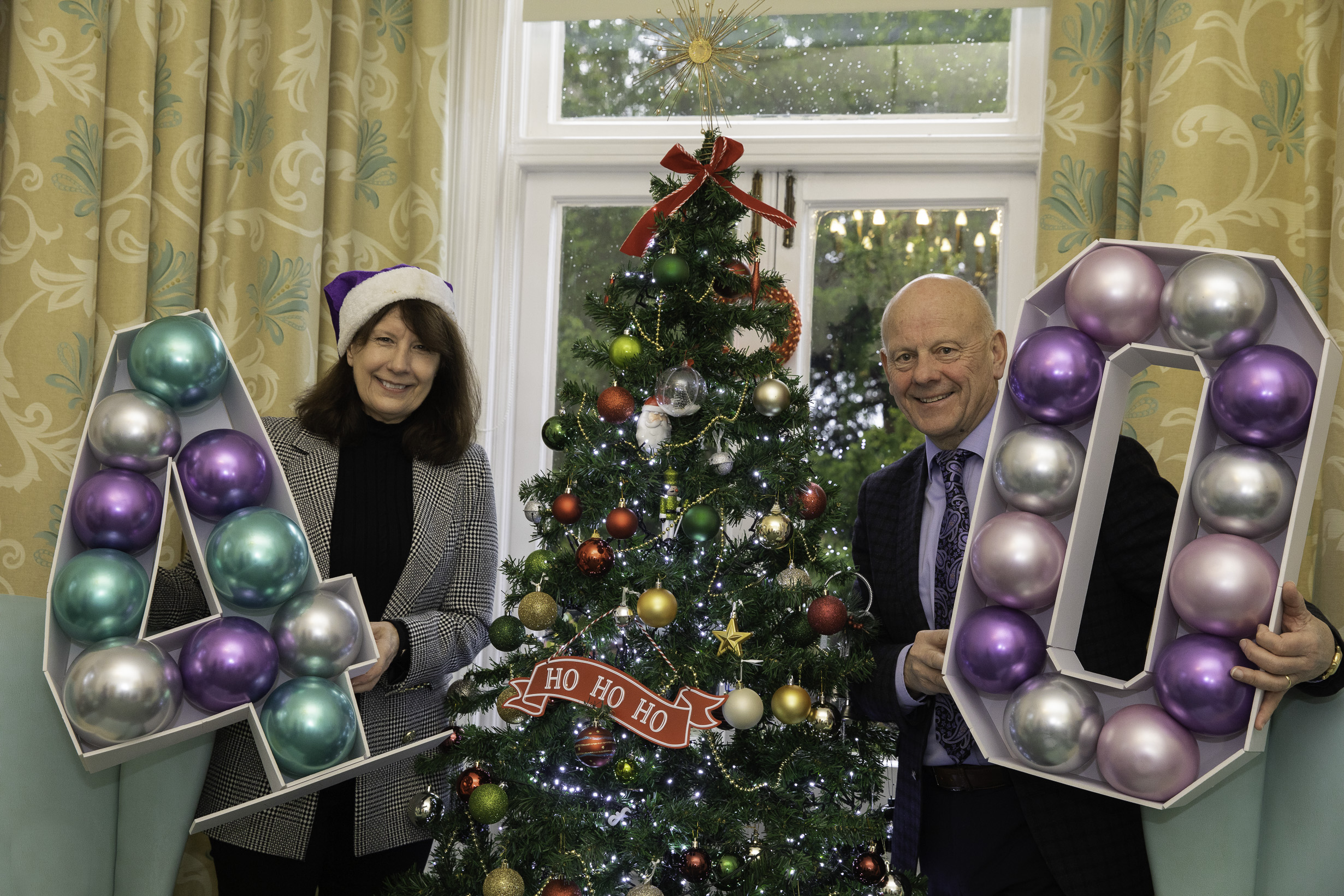 An "inspirational" couple have given festive hampers to more than 800 staff as their pioneering care organisation marked its 40th anniversary in style.