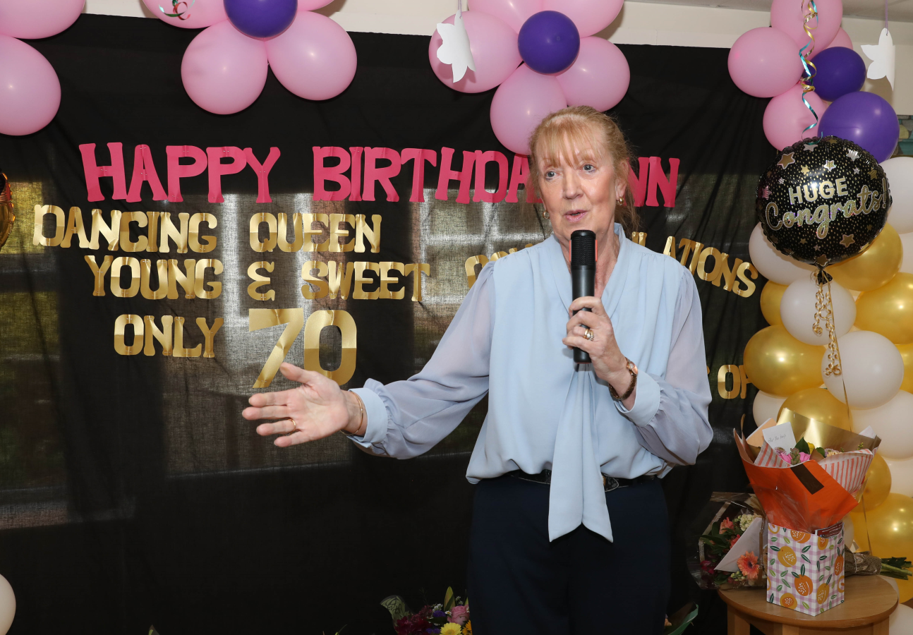 But instead she walked into a colourful music and dancing jamboree complete with balloons, flowers, a buffet and two celebration cakes - one for Ann and the other for Sarah.