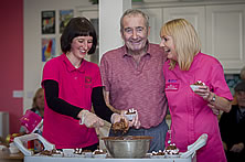 Pendine Park Denbigh Chocolate Shop conducted a workshop with residents to celebrate national chocolate week... Pictured is Ceri Belshaw from Denbigh Chocolate shop with resident John Molyneux and Susie Owen Pendine Park