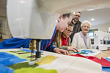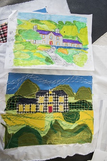 Pupils from Ysgol yr Hendre in Caernarfon visited Bryn Seiont Newydd on the outskirts of the town so they could work alongside the people living there to make tea cosies and tapestries.